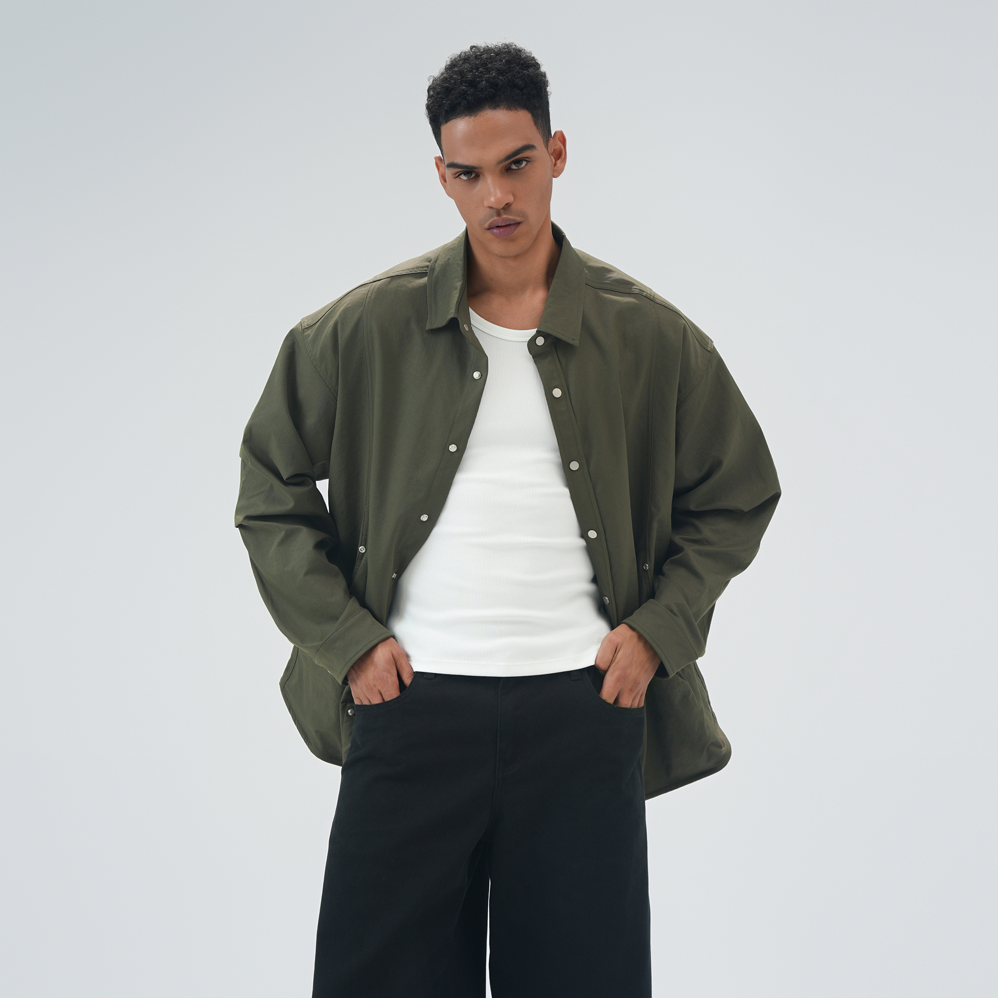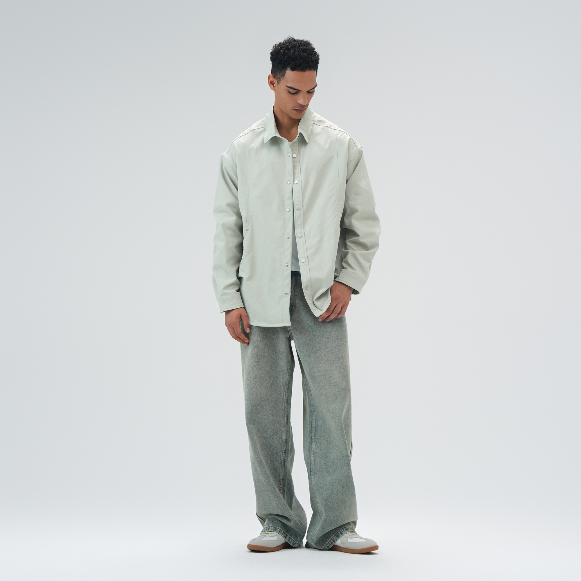 牛仔衣 工装 高级感防褪色原色水洗牛仔外套男宽松大码 翻领夹克新款