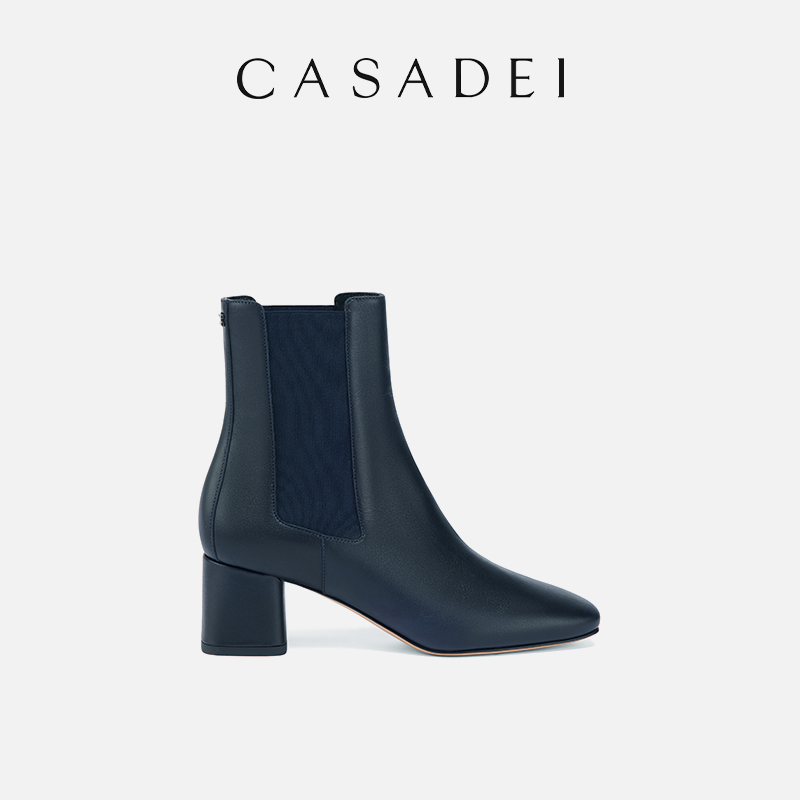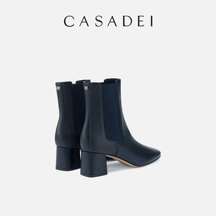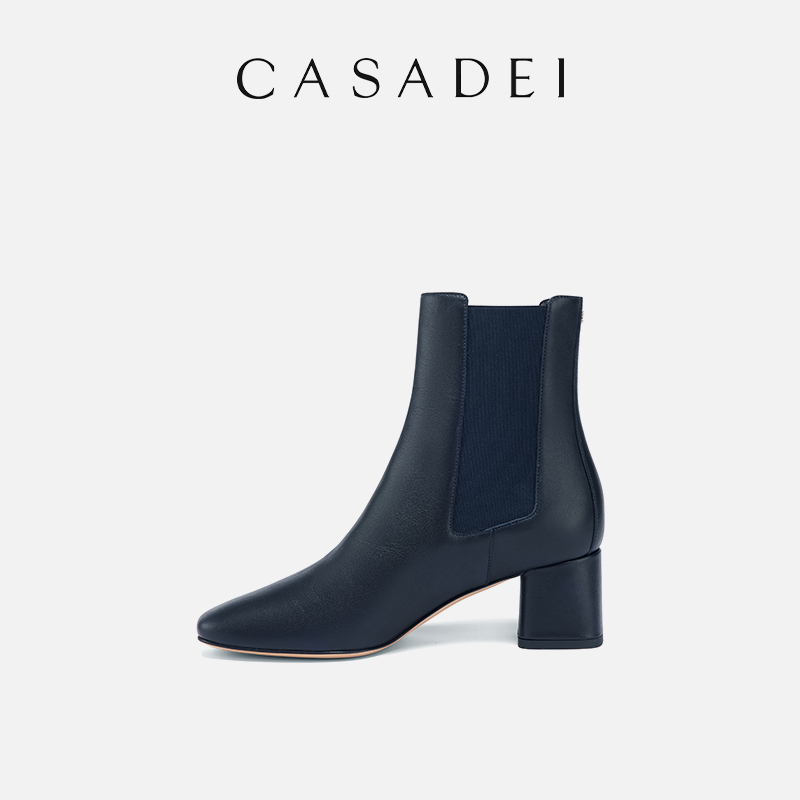 早秋新品 双11抢先购 牛皮切尔西靴粗跟短靴 卡桑蒂 CASADEI