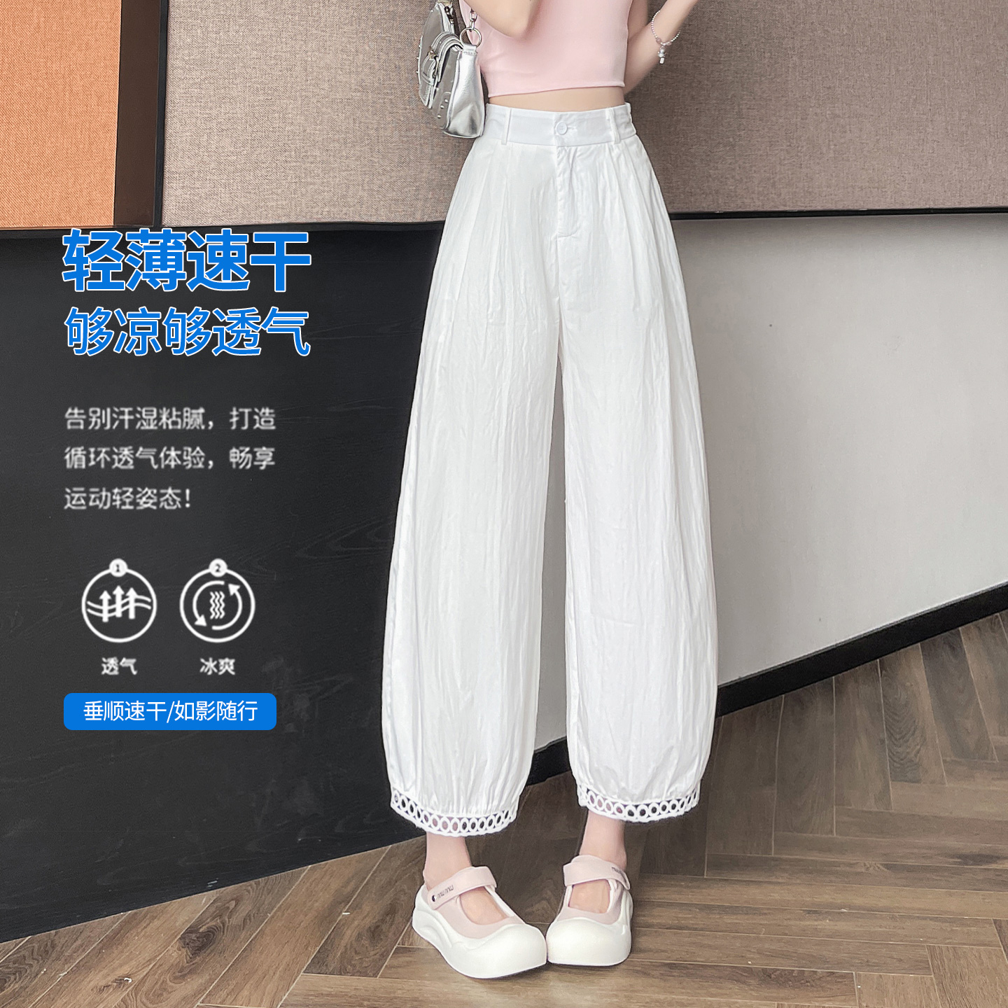 冰丝梭织长裤 夏季 宽松直筒速干裤 男休闲九分裤 子 361运动裤 裤 男裤