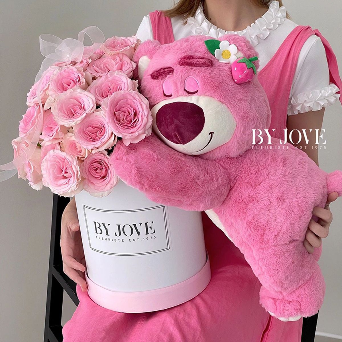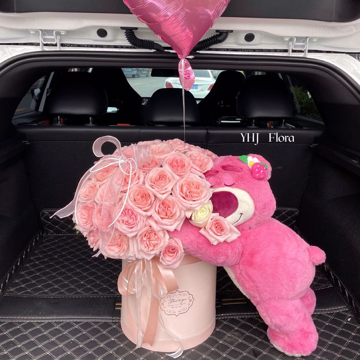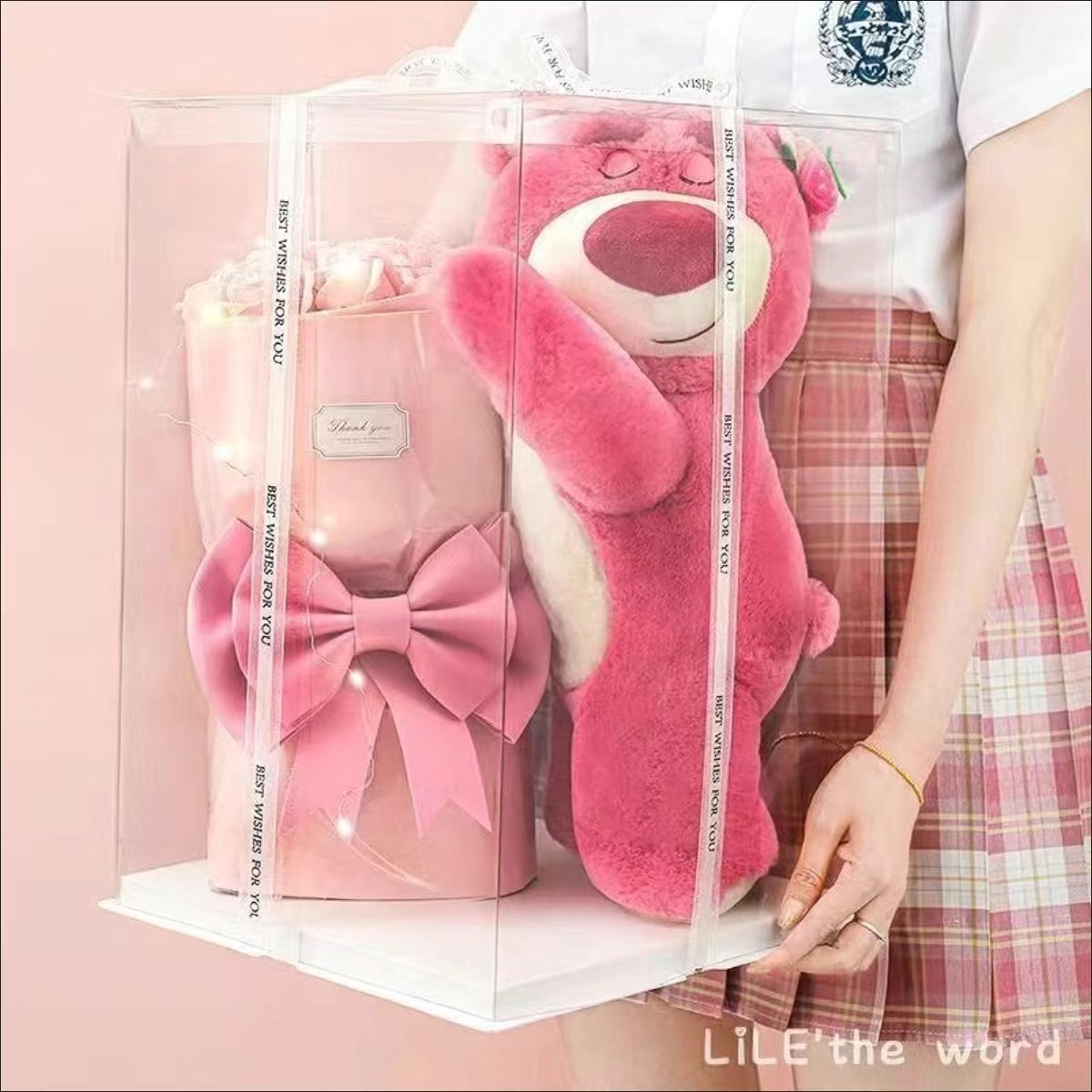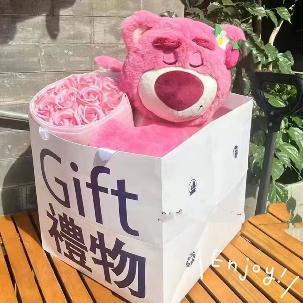 草莓熊可爱玩偶公仔花束永生花生日礼物送女生朋友女孩闺蜜抱抱桶