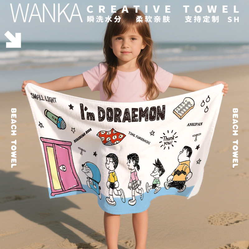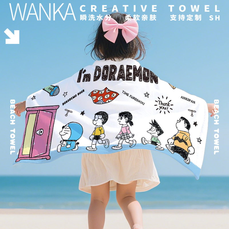 防晒长披肩海边沙滩巾游泳毛巾游泳速干毛巾哆啦A梦 游泳毛巾儿童