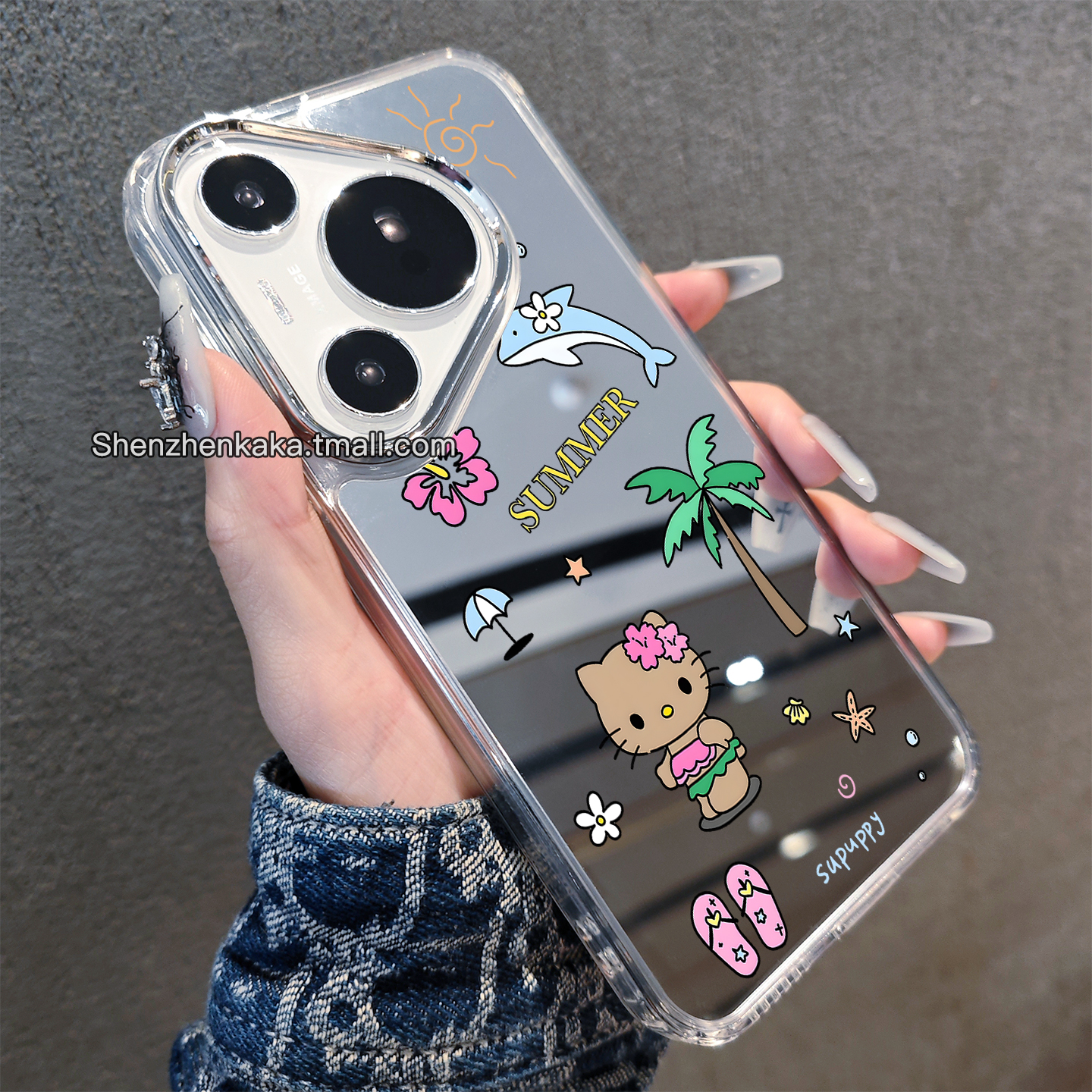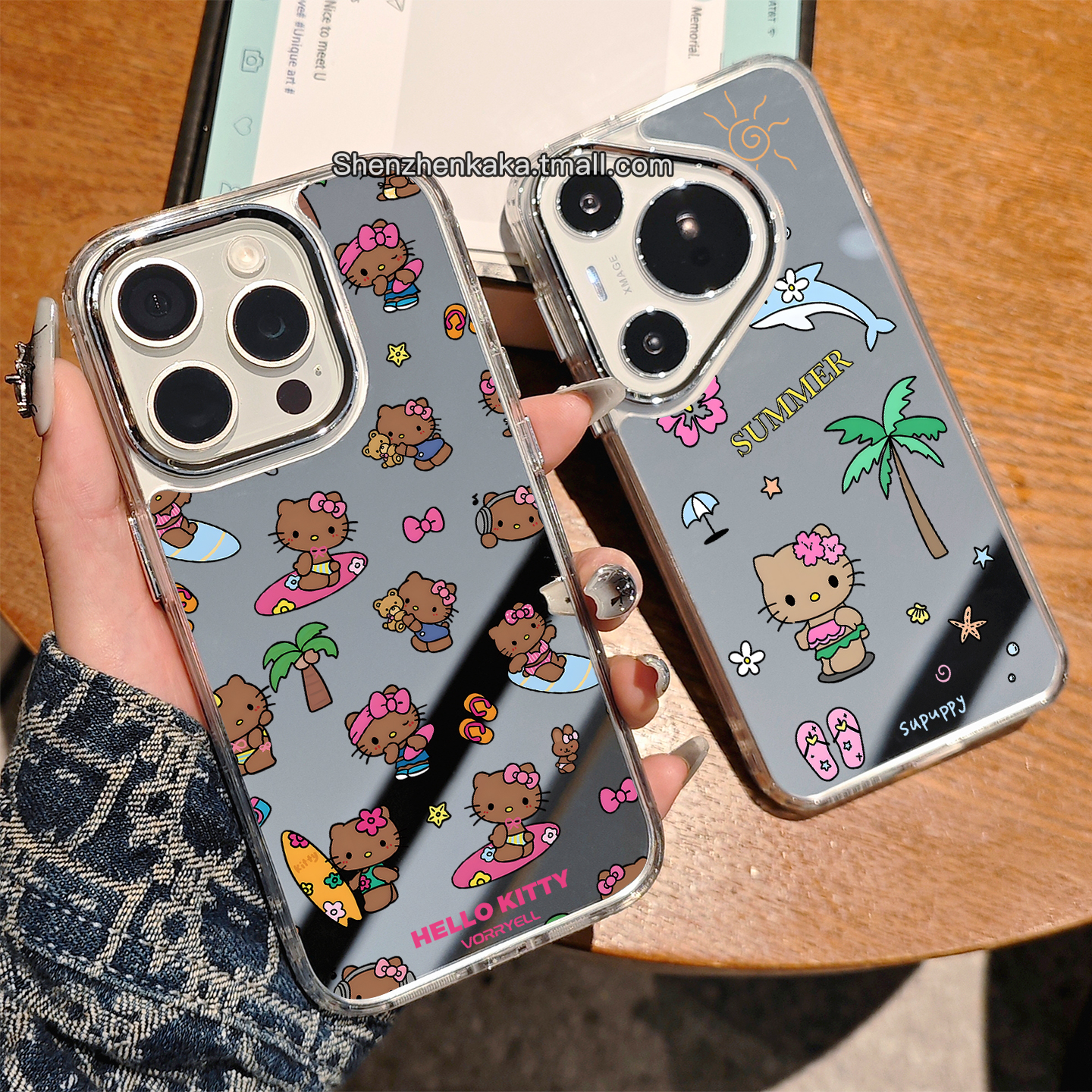 夏季 nova9凯蒂猫opporeno14可爱女vivox200 度假黑皮kitty手机壳镜面苹果16pro适用17promax小米15华为pura80