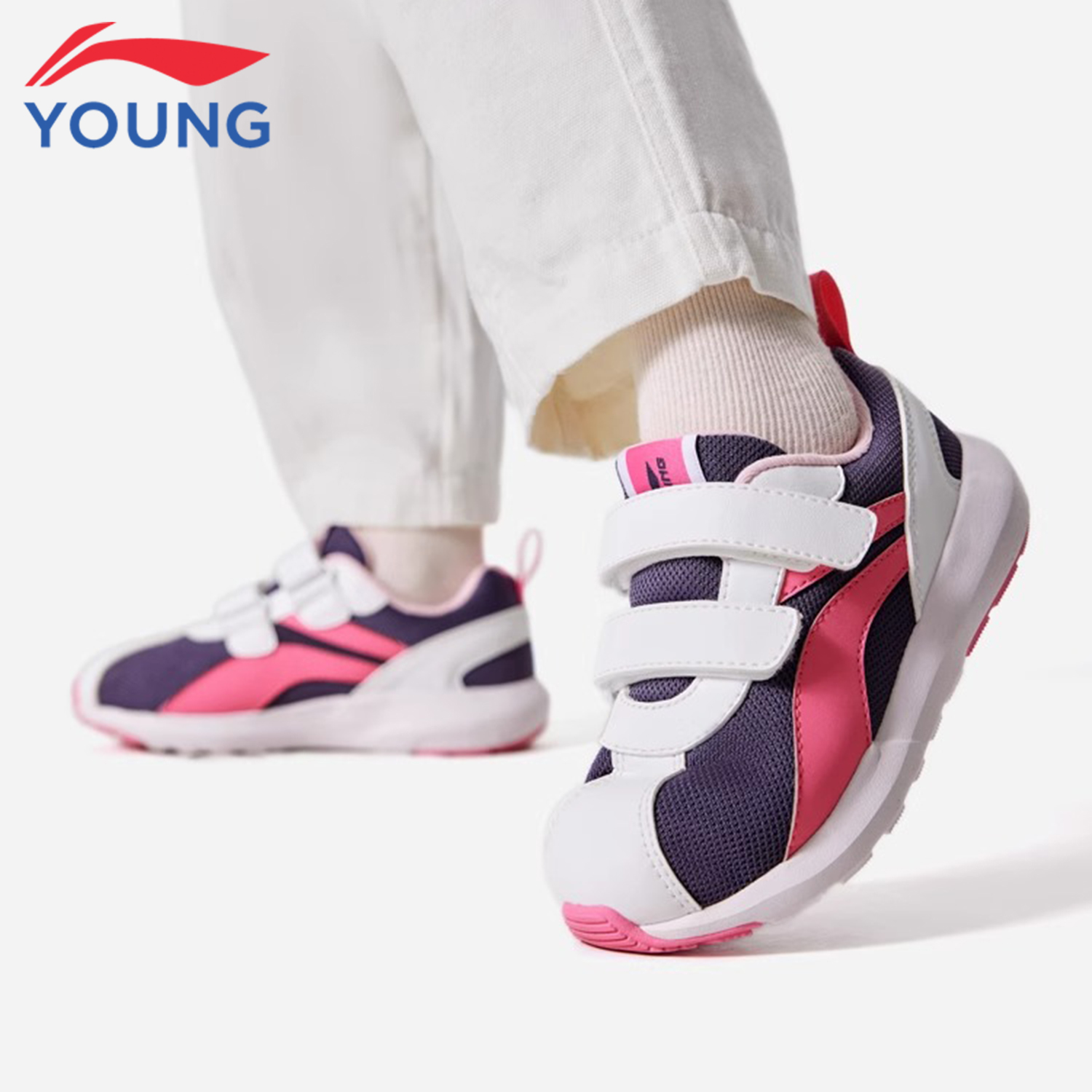轻便防滑魔术贴休闲阿甘鞋 李宁童鞋 新款 女小童2025秋季 儿童运动鞋