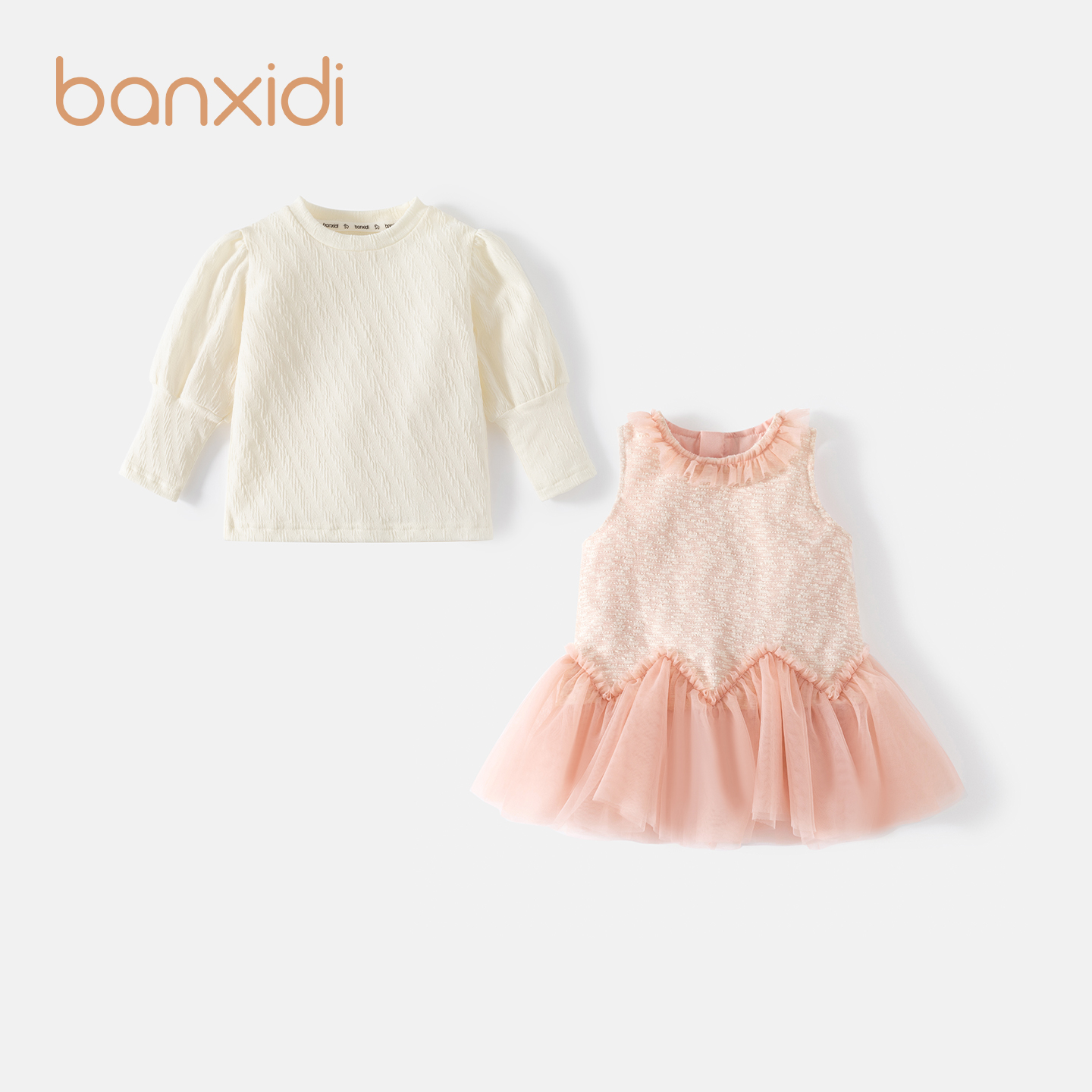 Banxidi女童连衣裙秋装 洋气宝宝小香风公主裙儿童网纱裙周岁礼服