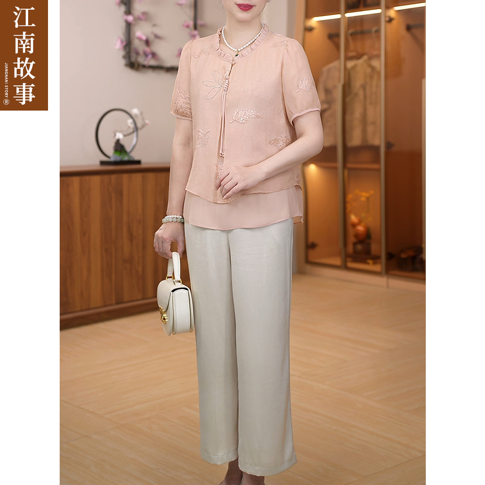 妈妈装 2025新款 夏季 国风中老年女新中式 小衫 宽松短袖 江南故事
