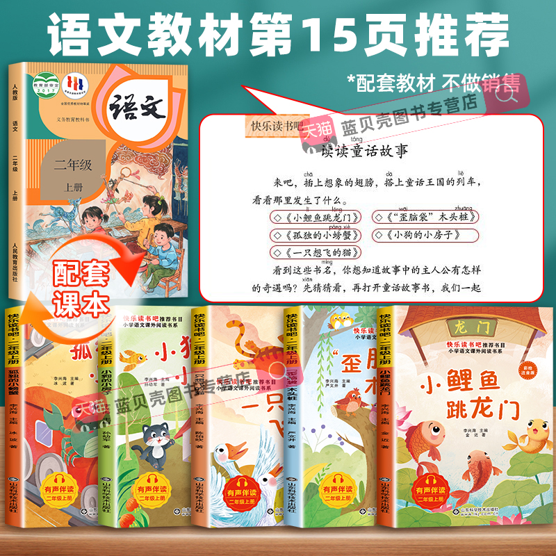 小螃蟹 猫 小鲤鱼跃龙门 歪脑袋 木头桩 小房子 全套5册送阅读手册 小狗 一只想飞 快乐读书吧 孤独 小学二年级上册适用