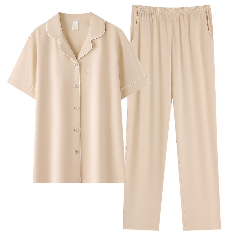简约女士家居服套装 宽松新款 果壳冰丝睡衣女春秋款 Gukoo