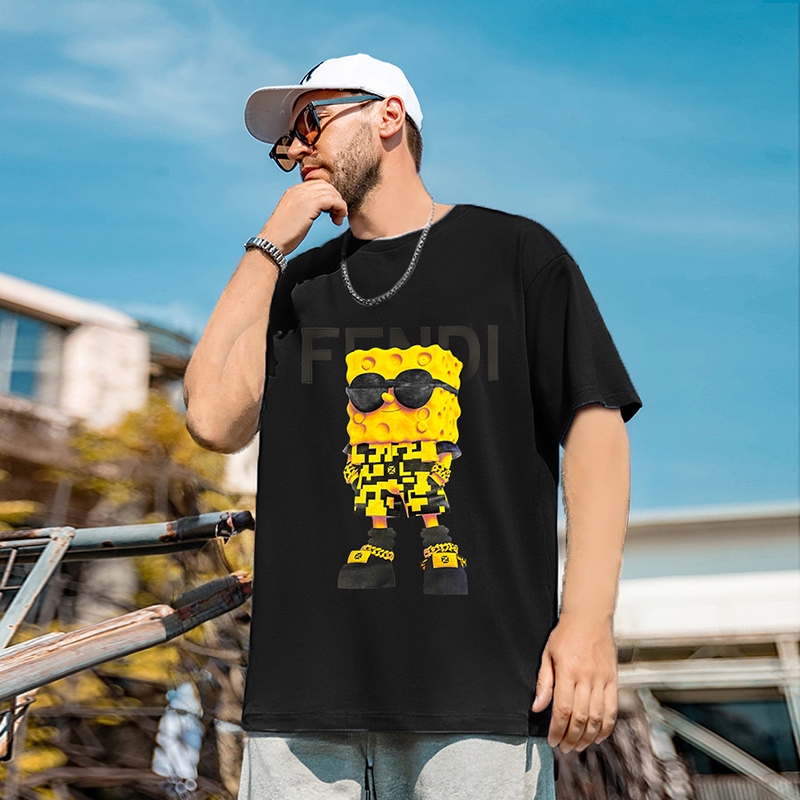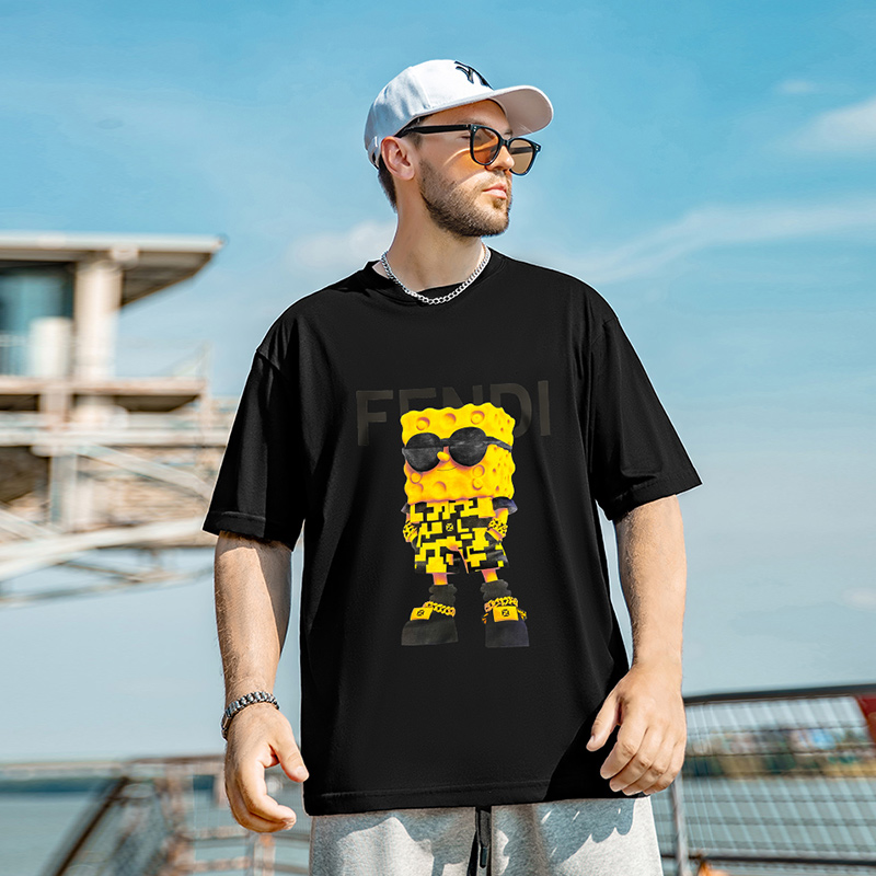T恤夏 胖子卡通童趣印花休闲宽松加大圆领短袖 纺布者潮流大码 男装