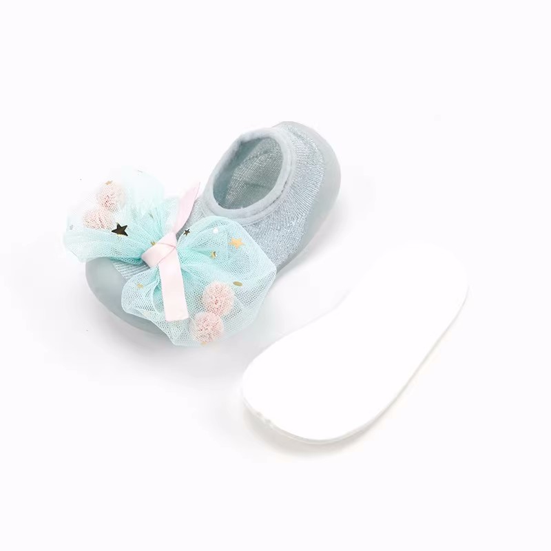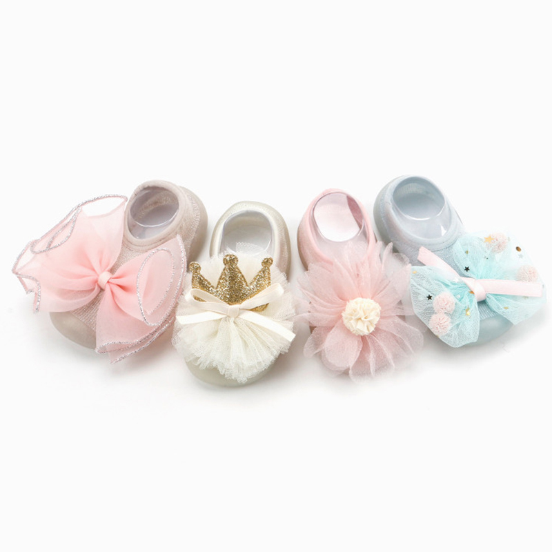 女宝宝地板鞋 袜周岁礼物防滑地板袜婴儿学步袜蝴蝶结木耳花边公主