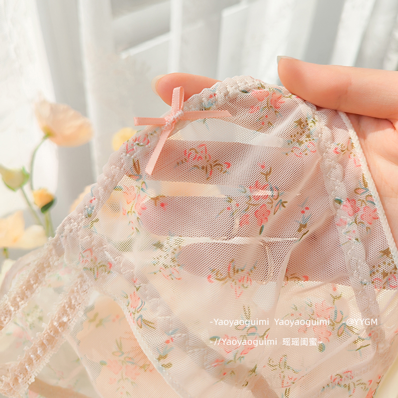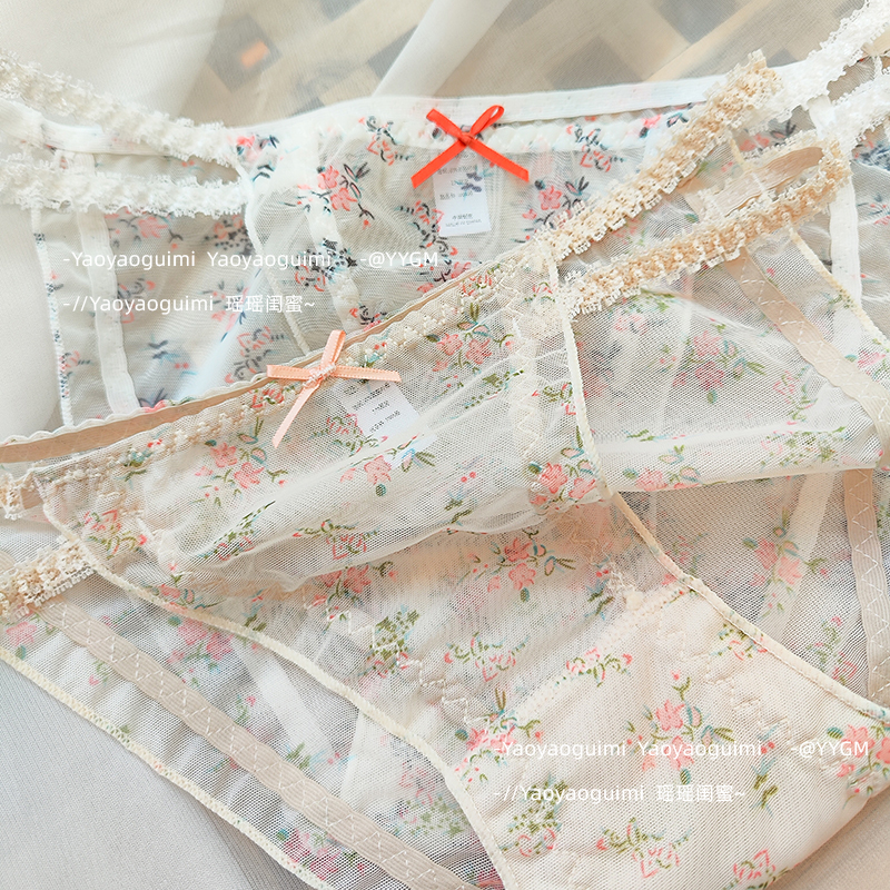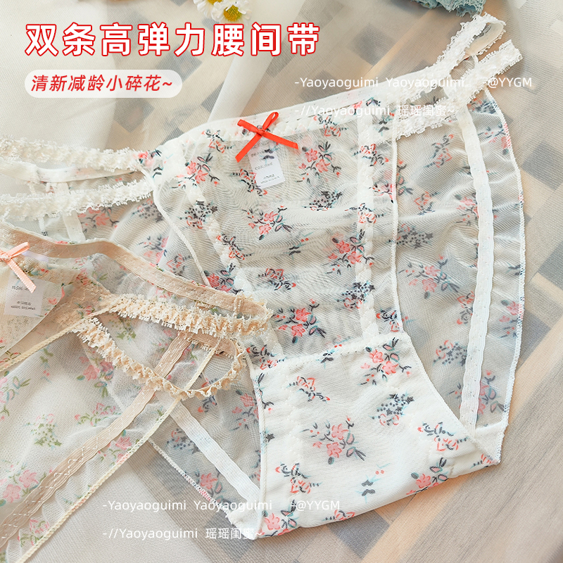 头 女不勒腿胖mm无痕高弹女士三角裤 瑶瑶闺蜜蕾丝网纱大码 碎花内裤