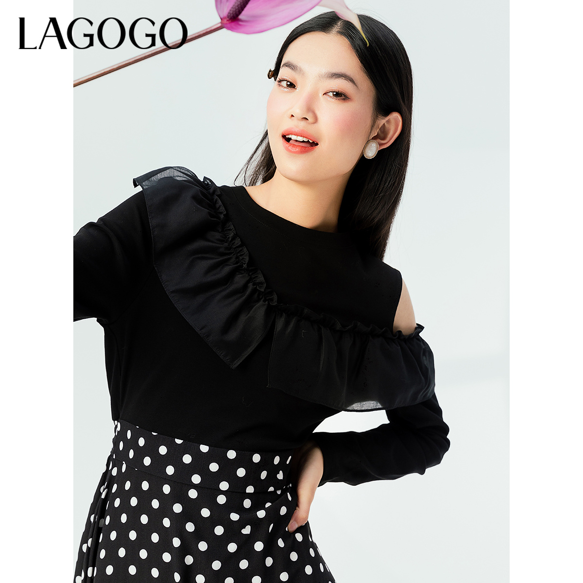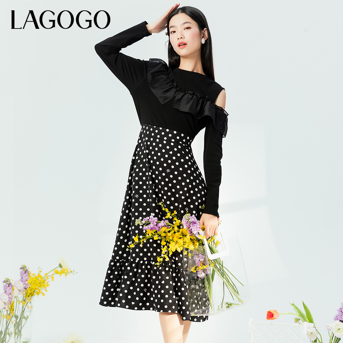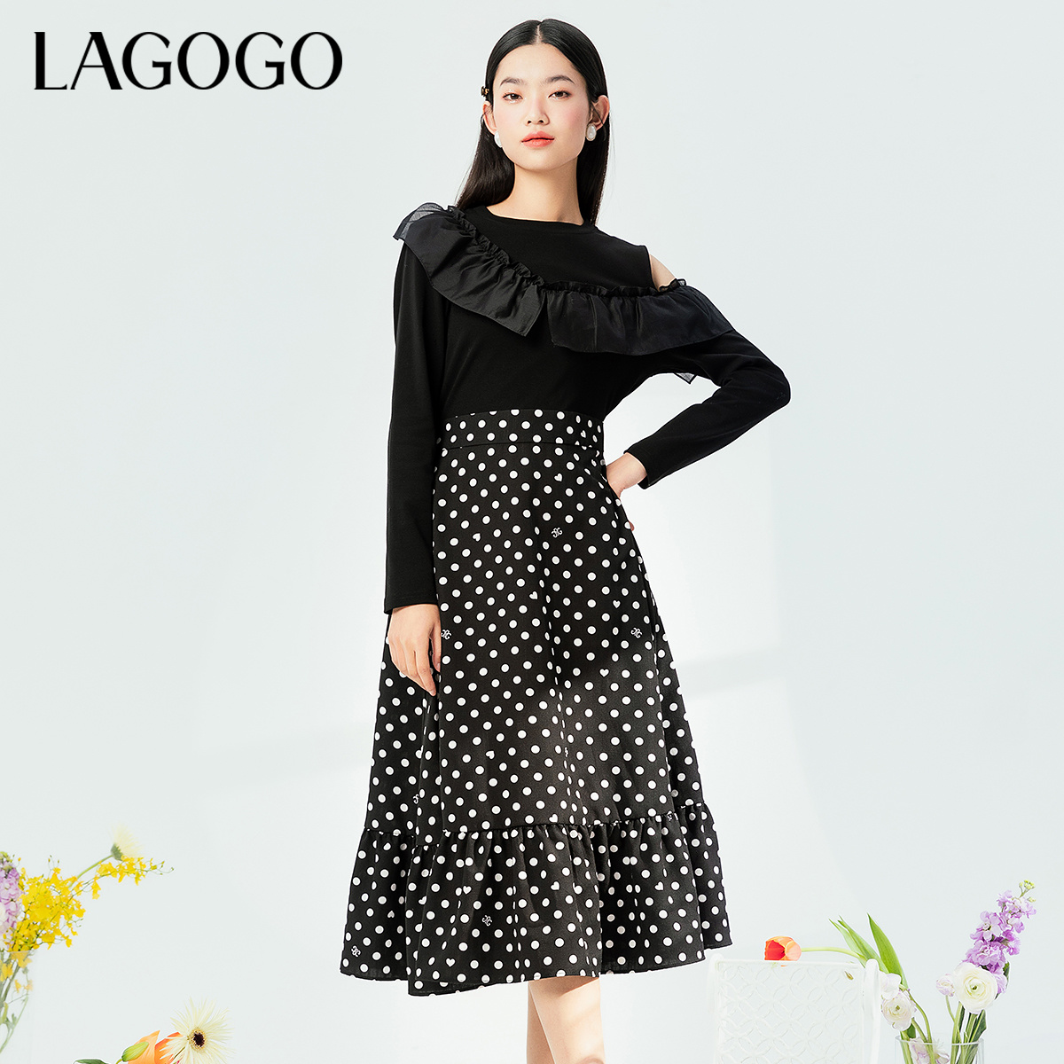 设计师款 佐丹奴针织裙女温柔风麦穗提花木耳边A摆连衣裙18465513