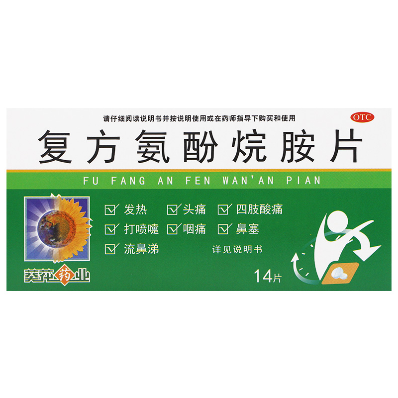 葵花 盒发热头痛咽痛鼻塞成人普通感冒旗舰店 复方氨酚烷胺片14片