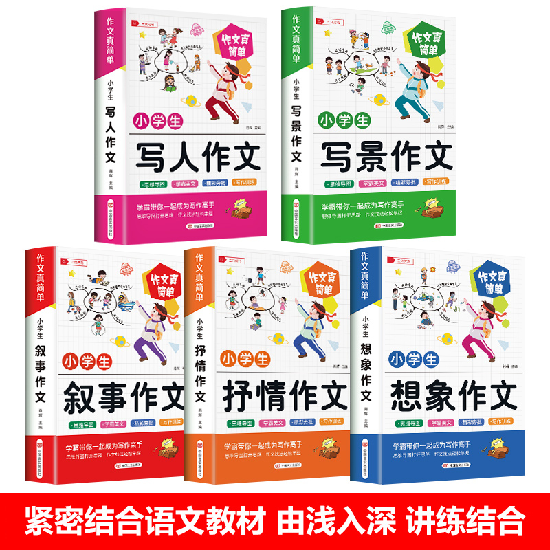 作文真简单小学生作文大全写景作文写人作文叙事作文想象作文抒情作文三四五六年级作文写作素材积累辅导书写出高分作文 全5册