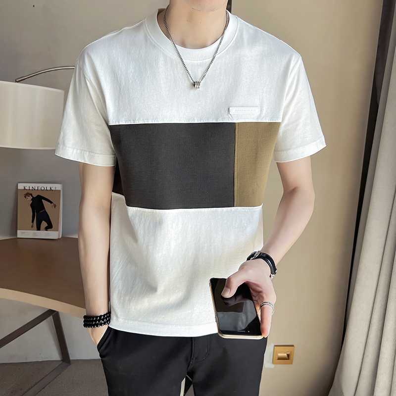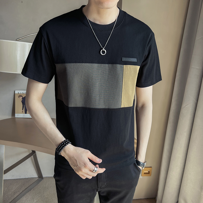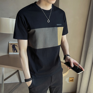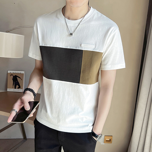 上衣潮打底衫 夏季 衣服男款 t恤男高级感潮牌拼接半袖 男生体恤 短袖