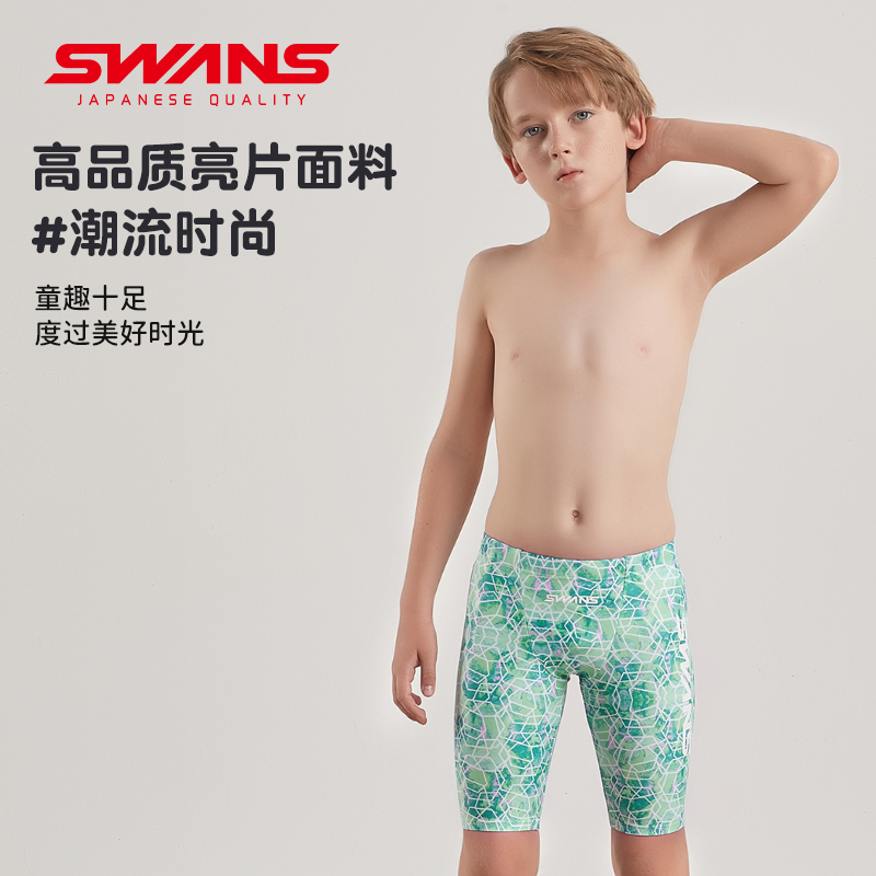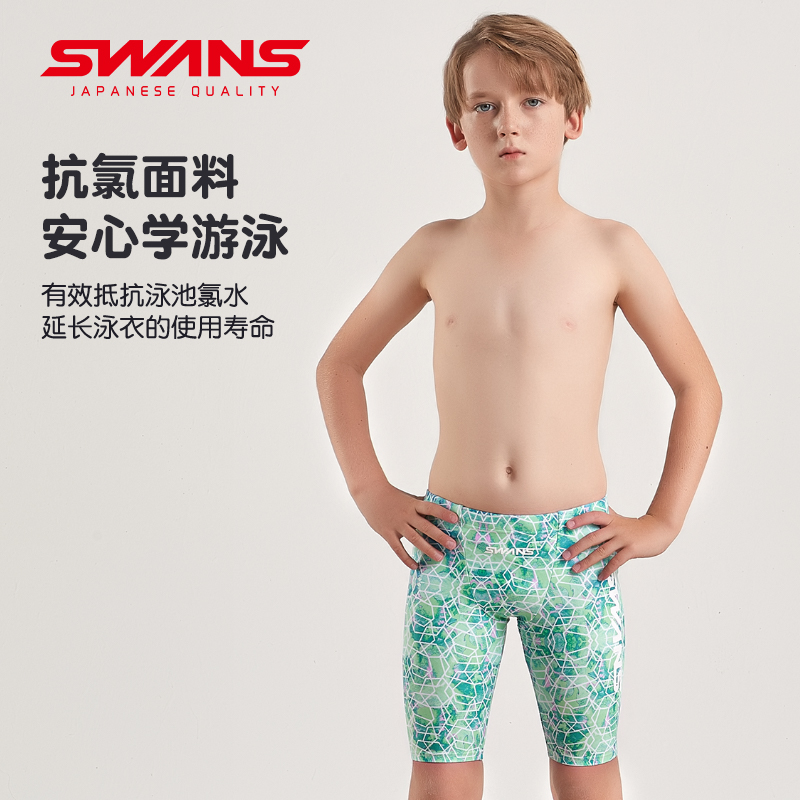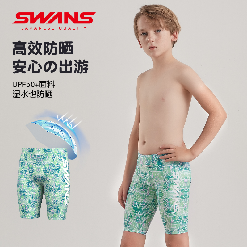 swans儿童泳衣男孩五分专业平角男童泳裤 备 2025男孩中大童游泳装