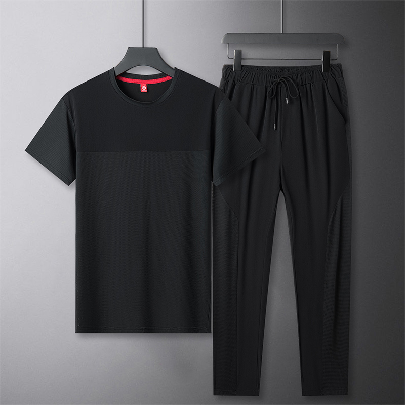 男短袖 薄款 长裤 跑步运动服大码 t恤速干衣休闲两件套 夏季 冰丝套装