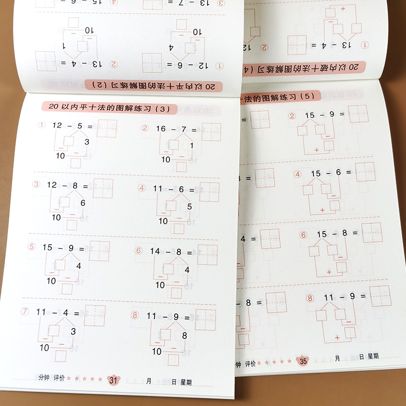 平十法破十法和凑十法借十法幼小衔接数学20以内加减法天天练二十以内加法减法口算数练习册一日一练幼儿园大班上册下册数学练习题