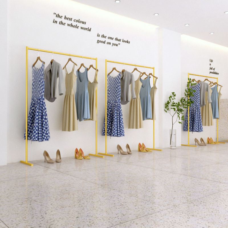 货架金色 衣服中岛家用晾衣架落地衣帽架童装 铁艺服装 店展示架女装