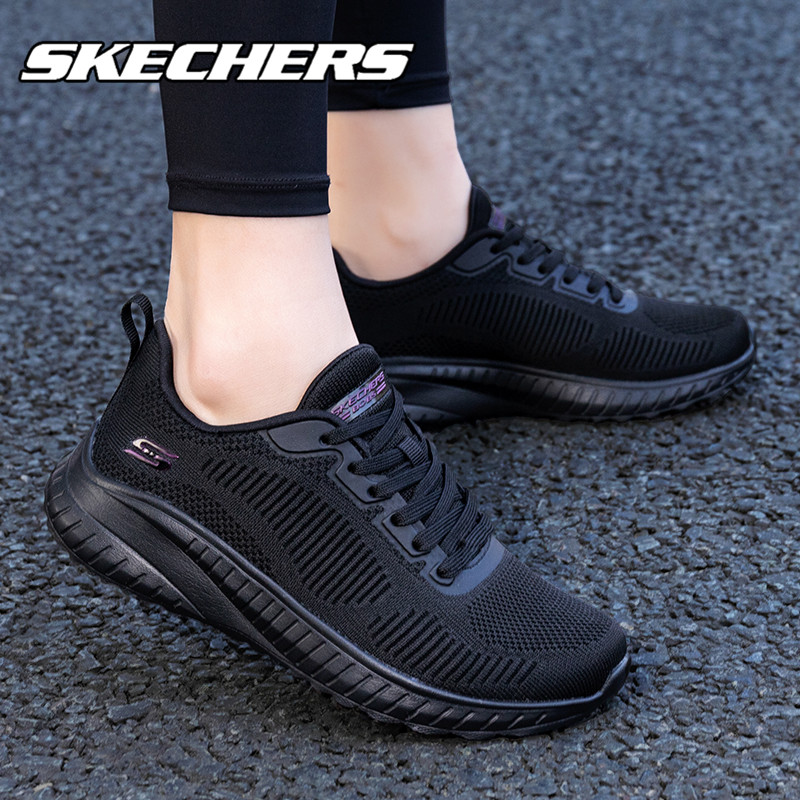 轻便软底运动鞋 网面透气休闲鞋 女冬季 Skechers斯凯奇全黑色跑步鞋