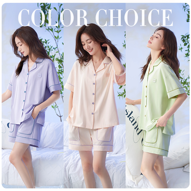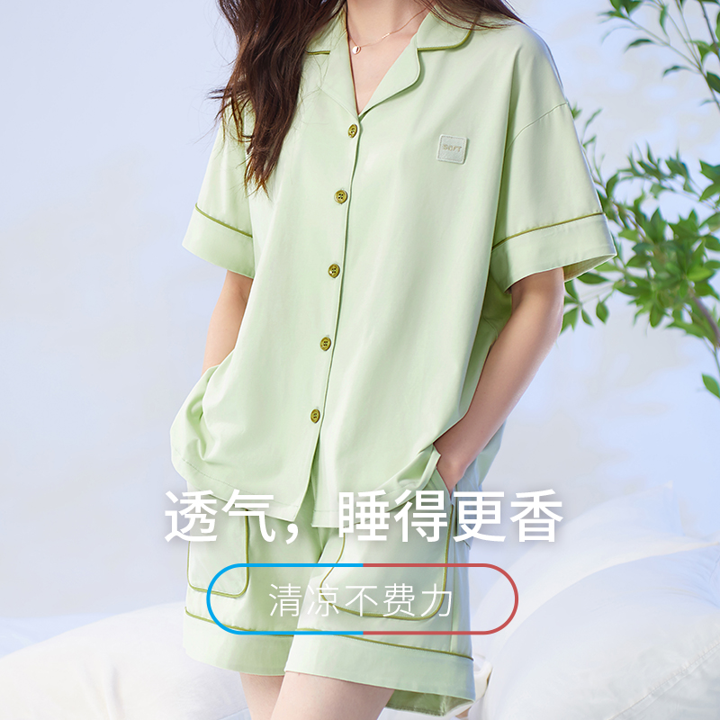 新款 睡衣女士夏天纯棉短袖 夏季 薄款 宽松家居服套装 大码 凉感棉