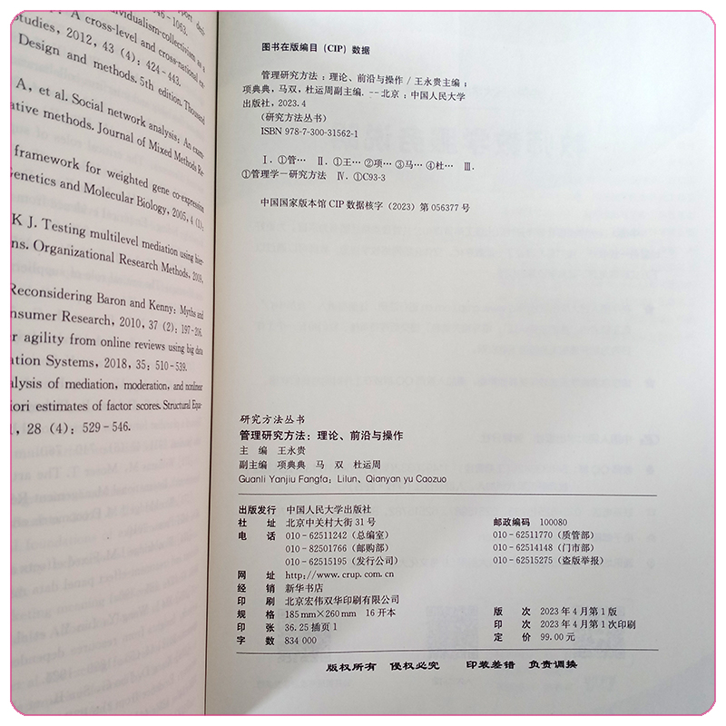 研究方法丛书 王永贵 中国人民大学出版 理论 社9787300315621 杜运周 前沿与操作 马双 管理研究方法 项典典