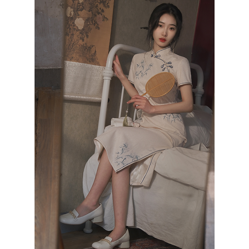 女装 收腰新中式 旗袍连衣裙夏设计感开叉复古气质时尚 中国风改良版