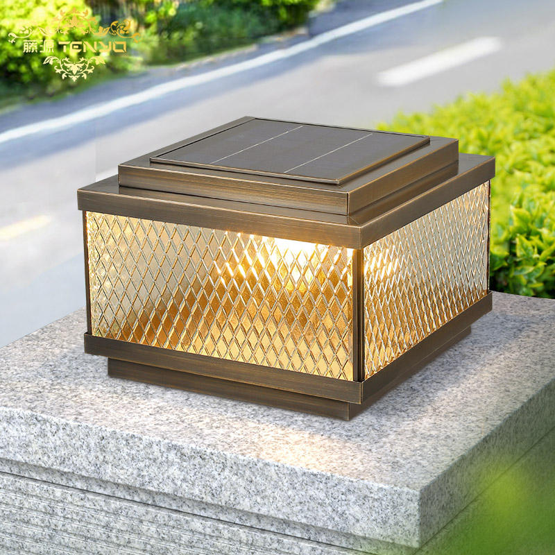 藤源全铜太阳能柱头灯庭院围墙大门柱子灯户外防水别墅花园门柱灯