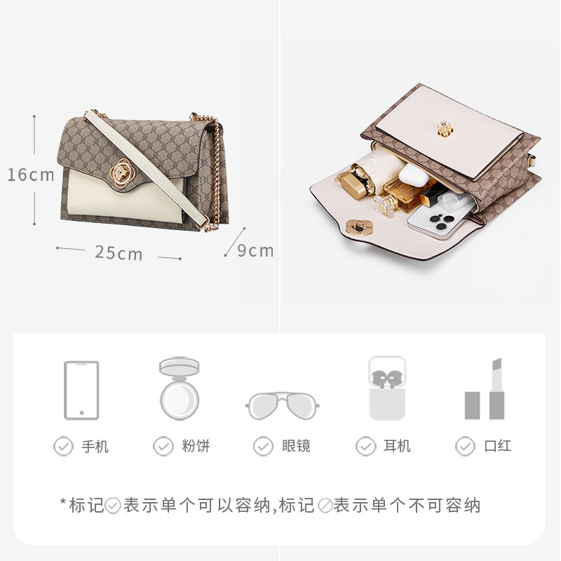 意尔康包包斜挎包新款 2025女包复古老花链条包百搭小方包单肩包潮