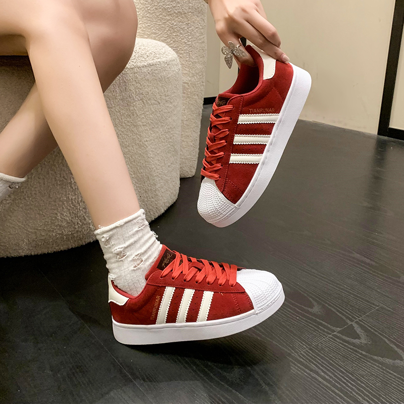复古小众百搭平底休闲运动板鞋 新款 女2025年秋季 真皮贝壳头小白鞋