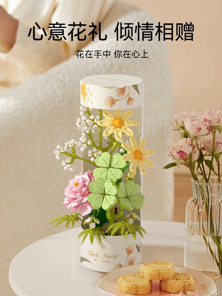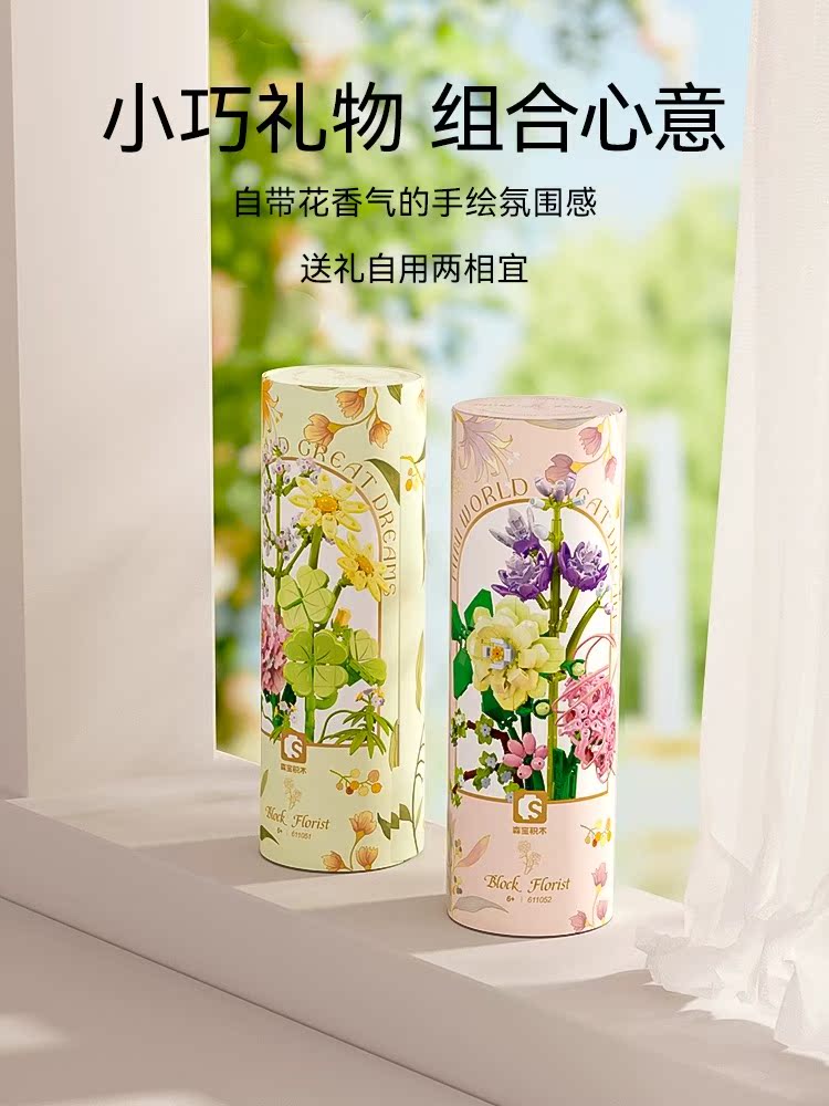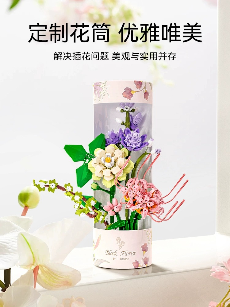 益智玩具摆件生日礼物 森宝积木花筒永生花积木儿童拼装 新品