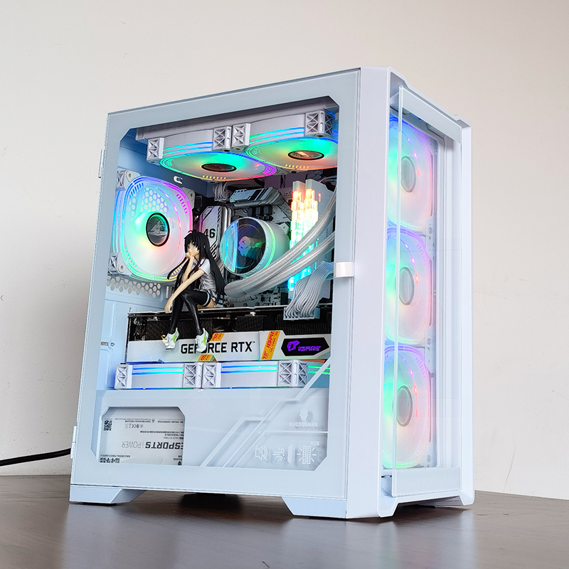 玩嘉绝尘玩家白游戏办公防尘电脑机箱玻璃侧透M ATX主板240水冷