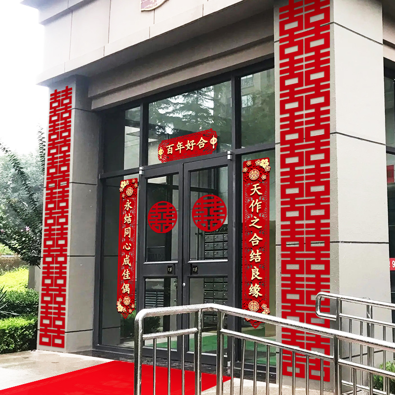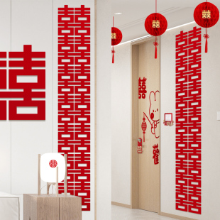 长喜字婚房布置喜字贴长条喜字结婚专用大门单元 饰墙贴连喜字 门装
