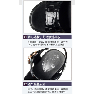 外穿不累脚漆皮女鞋 防水台厚底粗跟凉鞋 时尚 真皮走秀高跟鞋 女夏季