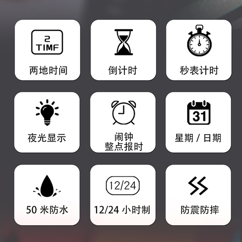 运动手表男款 初中小学生儿童男童女孩青少年防水小方块电子表男生