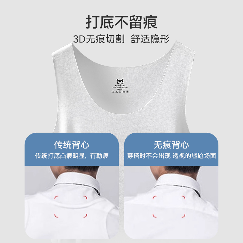 超薄冰丝男士 猫人无痕背心男莫代尔打底衫 夏季 男款 防凸点防透汗衫