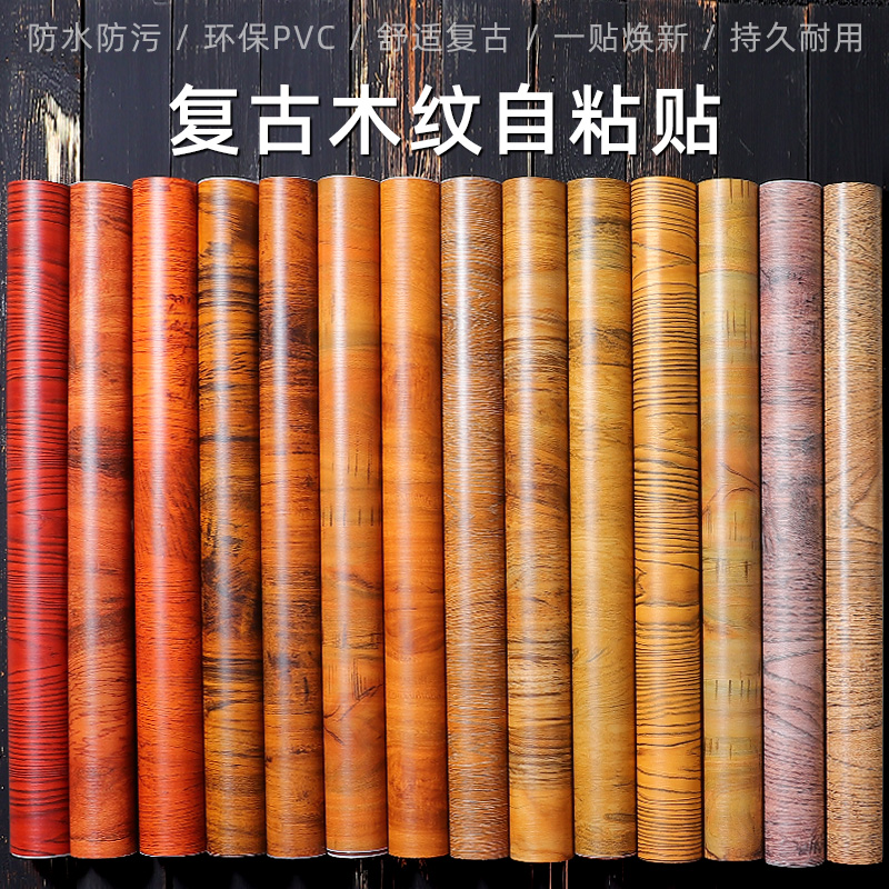 仿真复古木纹贴纸自粘翻新家具柜子桌面木门贴皮防水墙纸壁纸装 饰