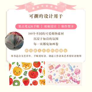 可爱萌物160例 人民邮电出版 160张手账素材纸手工拼贴素材本手账贴纸装 饰素材 社 饰贴画笔记本贺卡装 手账素材撕撕书