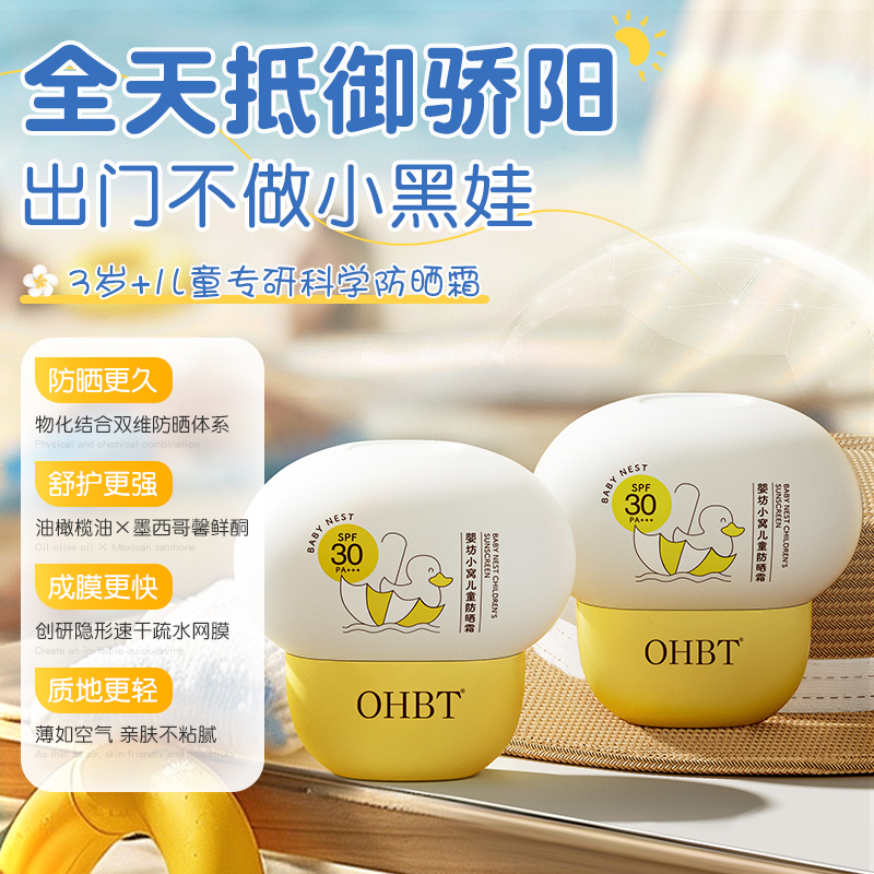 袋鼠比比儿童温和防晒霜宝宝夏季 专用隔离霜婴童防晒乳SPF30