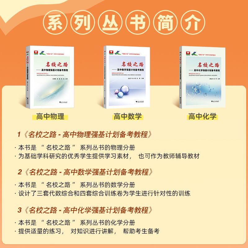 名校之路高中物理数学化学强基计划备考教程 浙大优学高中数学 高考数学化学物理校考模拟试题精选高三自主招生高校真题模拟题训练