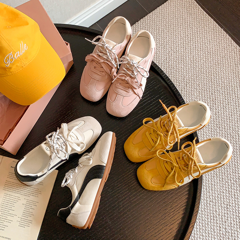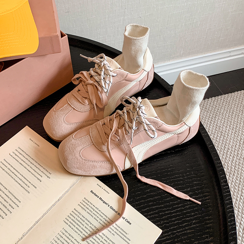 春夏软底多巴胺阿泡芙平底休闲鞋 粉色芭蕾风真皮德训鞋 女2025新款