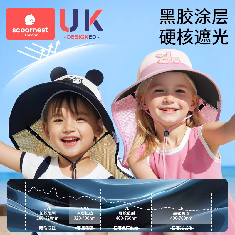 儿童防晒帽原纱宝宝遮阳帽男女童太阳帽夏防紫外线海边沙滩大帽檐