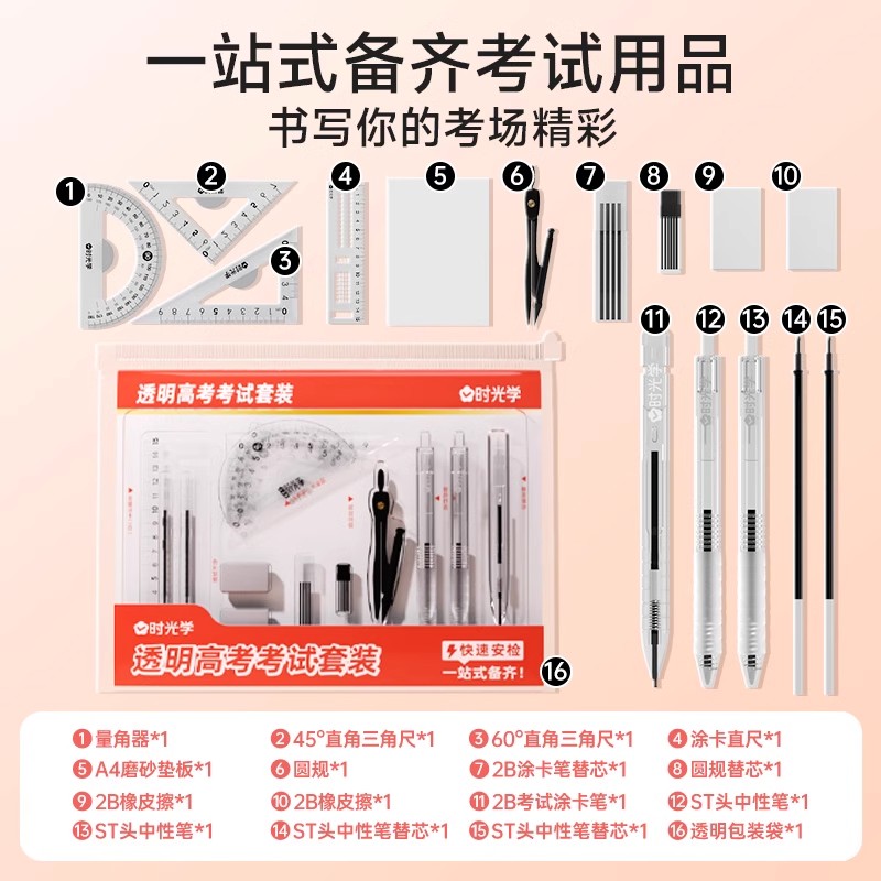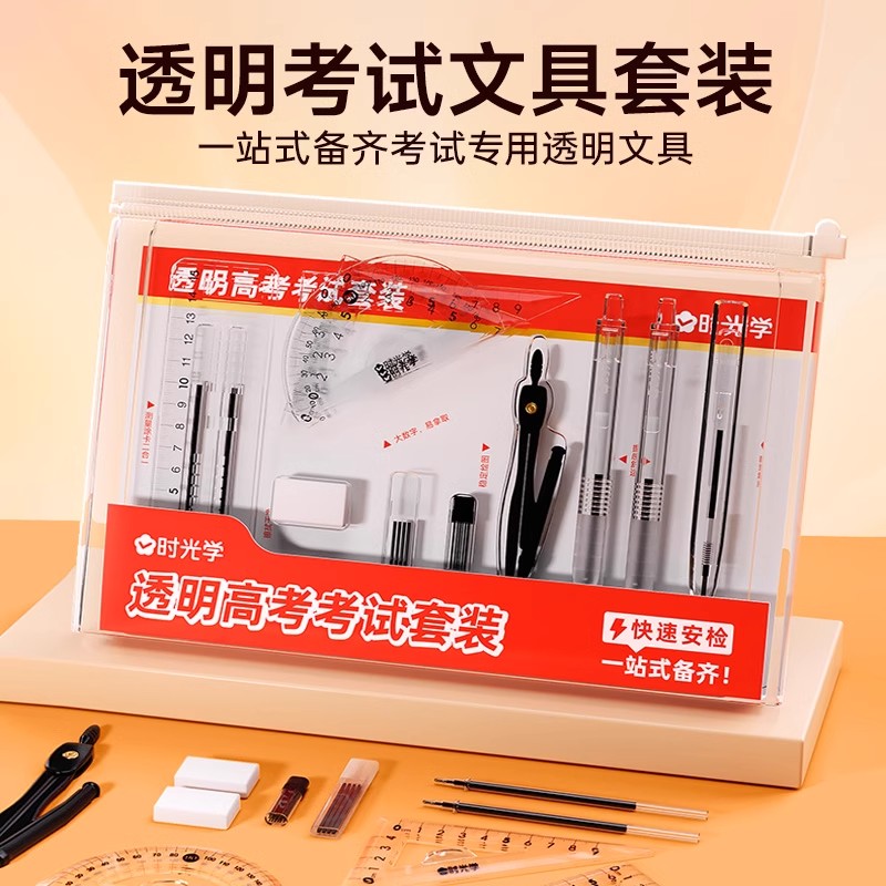 备齐考证用品考试套装 一站式 学生答题卡专用笔涂卡铅笔圆规国考公考研通用文具大礼包 2025中高考考试透明文具套装 时光学新版