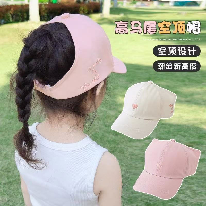 儿童可扎马尾空顶棒球帽小女孩薄款 春夏遮阳帽 鸭舌帽女童2025新款