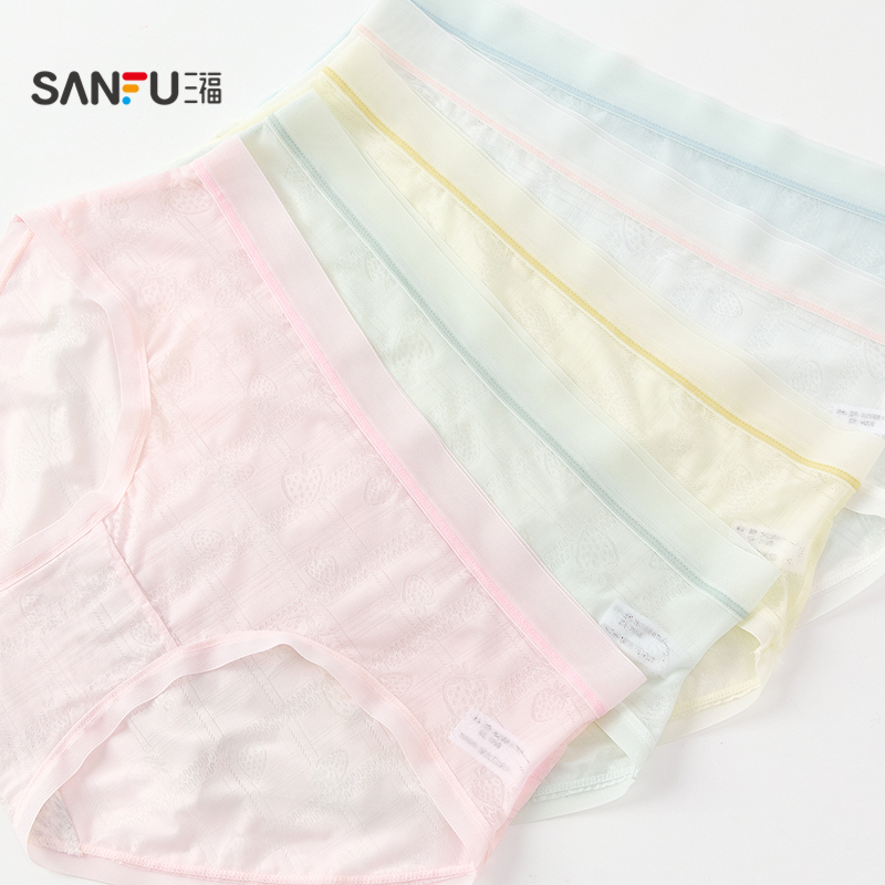 藤蔓棉质底裆性感蕾丝中腰平角裤 免定金 女花 爱慕内裤 3件包