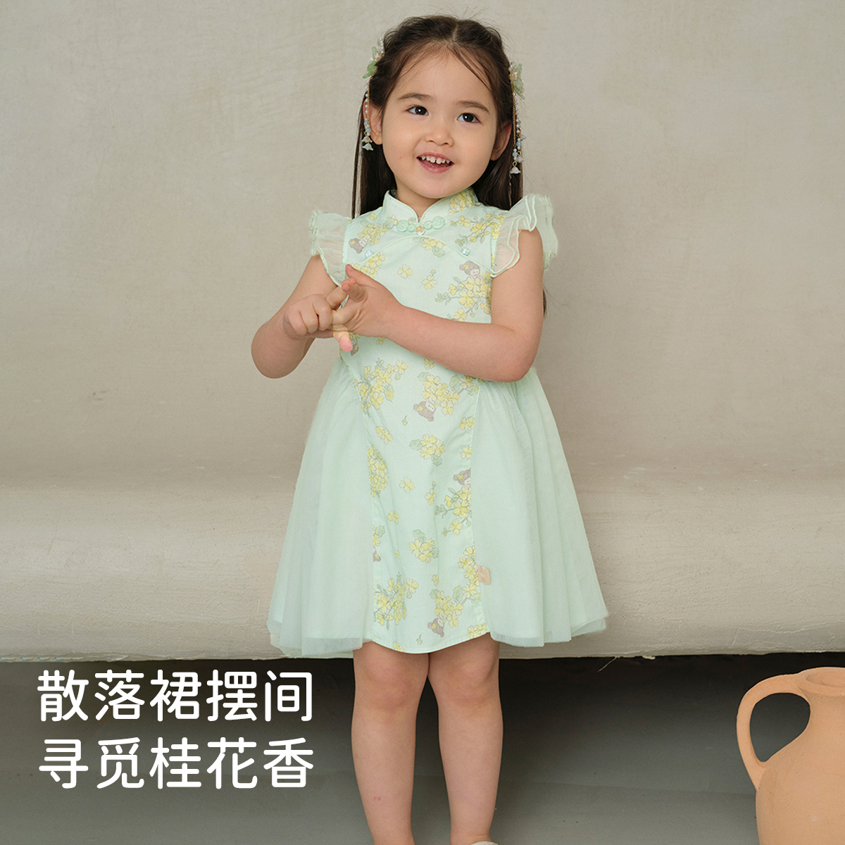 网纱裙夏装 戴维贝拉儿童连衣裙2025女童新款 国风裙子女宝宝新中式
