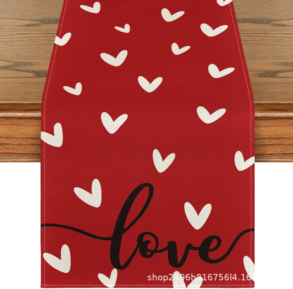 新款 饰台布桌布 情人节桌旗TEMU爱心侏儒LOVE家居装