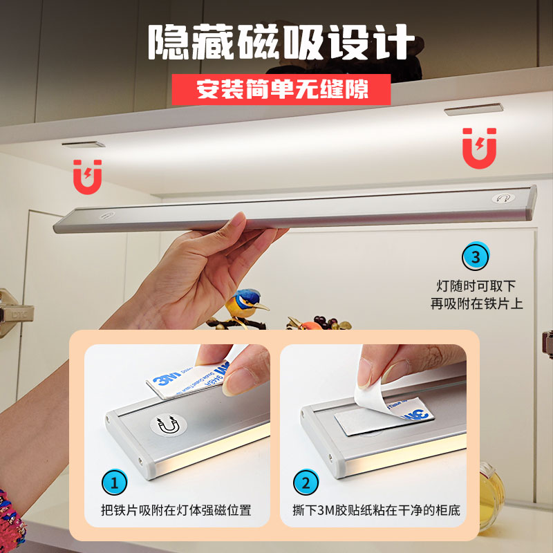 充电感应灯带展示柜磁吸自粘人体遥控无线超薄鞋 柜酒柜led橱柜灯