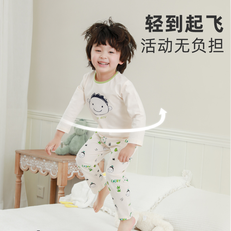 笑乐屋儿童家居服男童秋衣秋裤 睡衣纯棉抗菌女宝宝空调服 a类套装