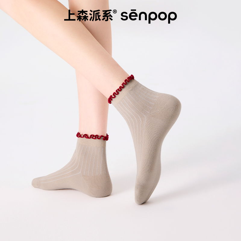 棉袜夏季 木耳边袜子女款 纯棉春秋无骨短袜防臭吸汗中筒袜配小皮鞋