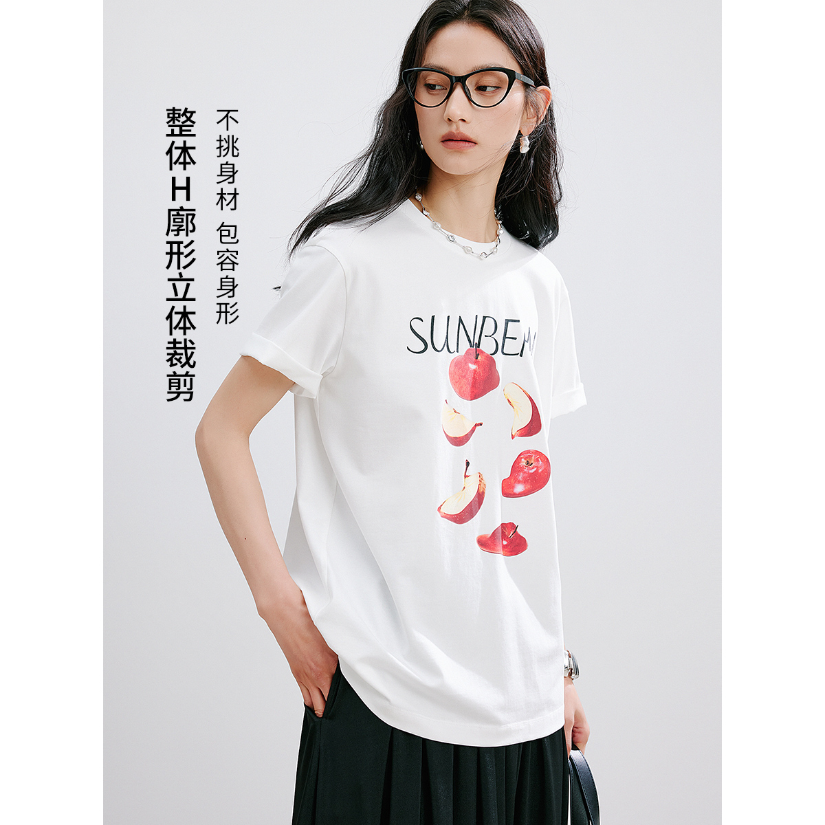 白色印花宽松上衣 新款 衣香丽影莱赛尔云感柔棉短袖 T恤女2025夏装